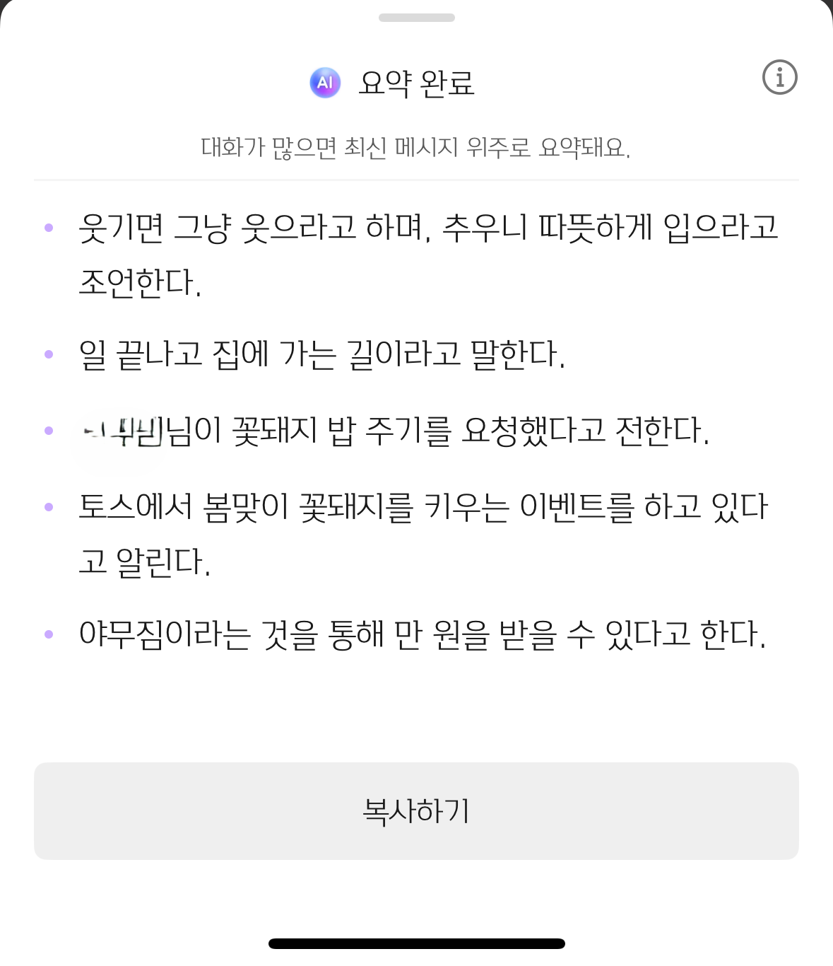 AI가 사용자의 채팅 맥락을 분석하여 적절한 답장을 추천해 주는 기능이 추가되었습니다.